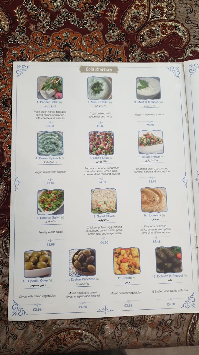 Welcome to Shah Abbas Restaurant رستوران شاه عباس, a hidden gem in North Finchley, where authentic Persian cuisine takes center stage. The menu is a delightful journey through traditional flavors, offering an array of grills like the succulent Khoobideh and tender Jojeh that are grilled to perfection, alongside unique dishes such as the Gormeh Sabzi, rich with herbs and spices.